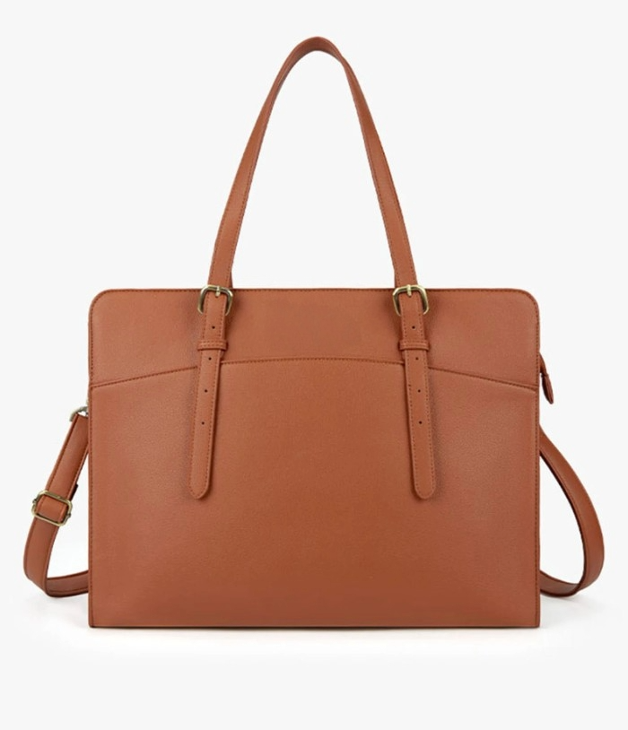 Work-suited custom-made leather tote bag for ladies. Elegant and stylish in any setting. Certain details can be personalized when requested.